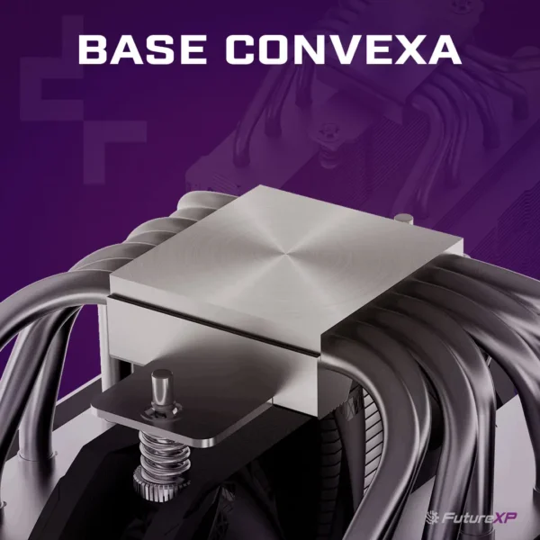 Está equipado con una base de cobre convexa mecanizada con precisión, esto permite un mejor contacto y una extensión adecuada de la pasta térmica y por lo tanto mejora la transferencia térmica.