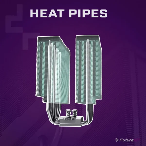 Dispone de seis tubos de calor de 6mm de diámetro, también de cobre, para conducir el calor a dos torres de refrigeración con 50 aletas cada una, esto equivale a una gran superficie de disipación y al ser dividida en dos torres se mejora notablemente el flujo de aire y por lo tanto el rendimiento.