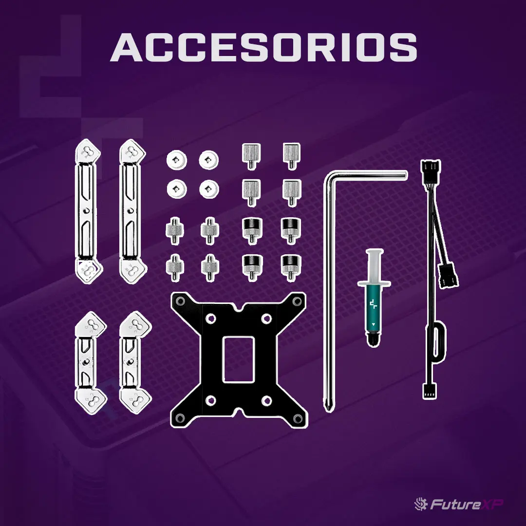 El kit de accesorios de montaje es de tipo puente metálico y el proceso de instalación es fácil y rápido tanto para plataformas Intel como AMD. Además incluye el destornillador.